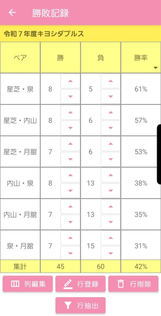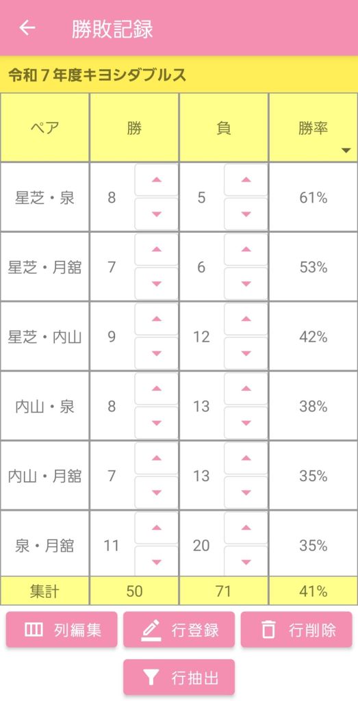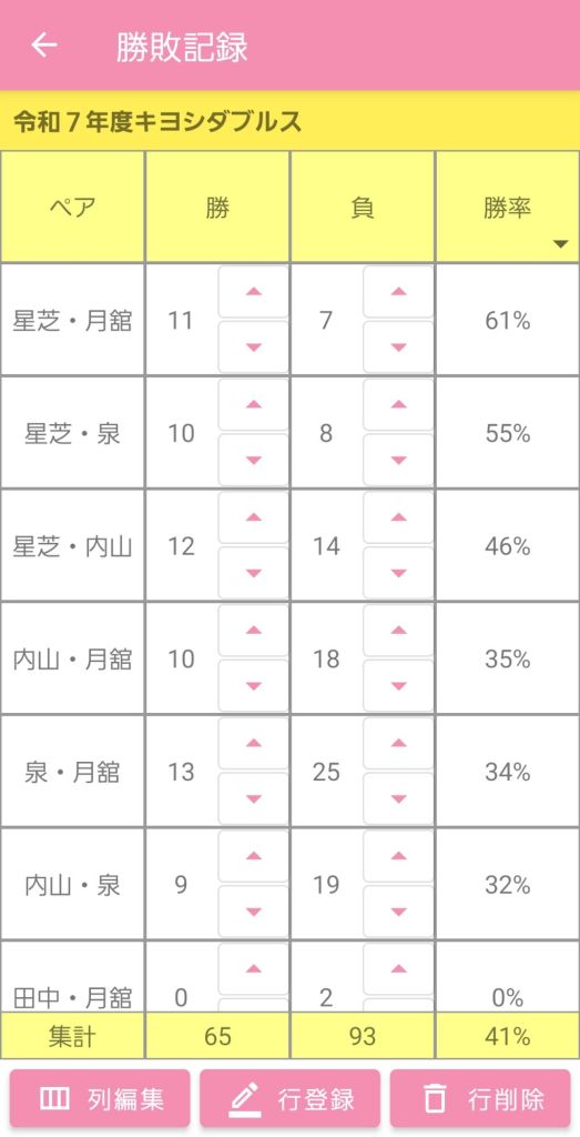 星芝52P 内山42P 泉37P 月舘27P 田中7P