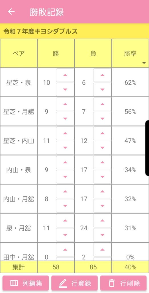 星芝85P 泉83P 内山82P 月舘62P 田中7P
